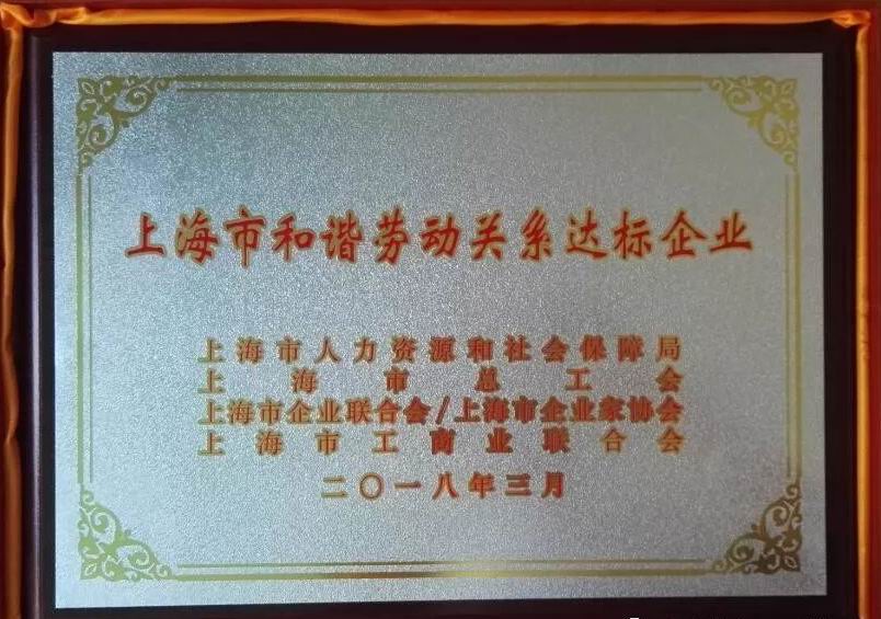 上海博悅生物科技有限公司榮獲由上海市人力資源和社會保障局及上海市總工會等聯合授予的“上海市和諧勞動關系達